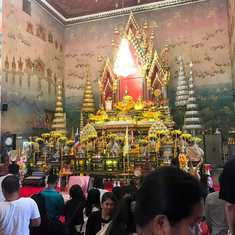 After breakfast, and I use the term loosely, we travelled to the local temple in order to pray for our blessings in the New Year. Yui explained to us that Thai people go to the temples on January 1 of each year in order to pay their respects and ask for good fortune for the coming 12 months. We were lucky enough to be part of the ritual. We started by lighting candles and incense, and laying the flowers as offerings or the shrine outside before entering the temple to give more offerings and pay our respects. The language barrier hindered some explanations of the ritual, so it's now something I must research on my own in order to clarify a few aspects to myself.